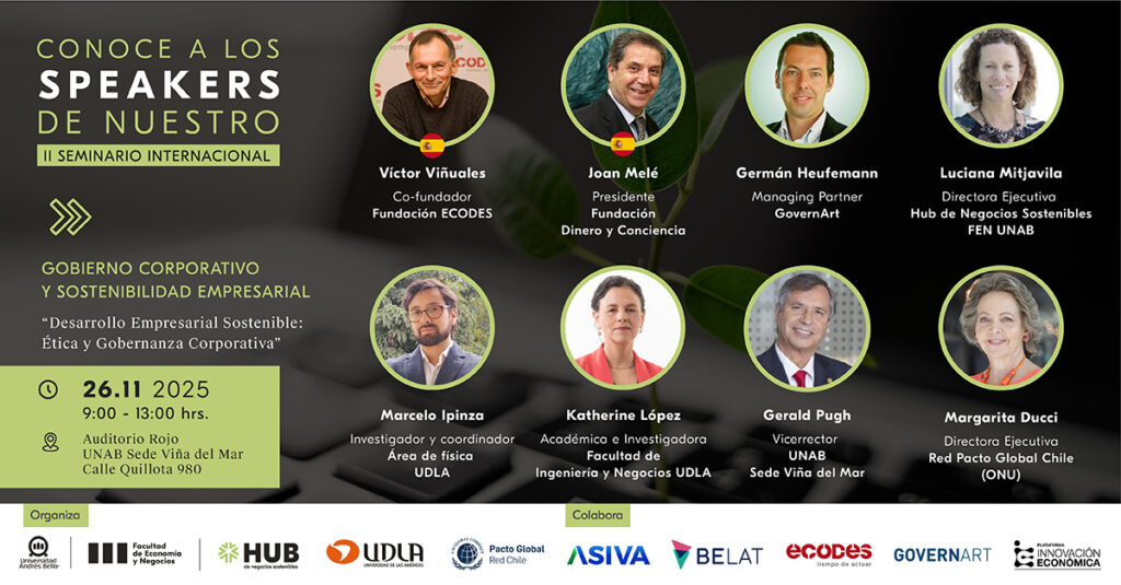 El II Seminario Internacional de Gobierno Corporativo y Sostenibilidad Empresarial reunirá a referentes de España y Chile para abordar los nuevos estándares, riesgos y oportunidades que hoy redefinen la gestión empresarial sostenible. La sostenibilidad dejó de ser un valor agregado para convertirse en un pilar estratégico de competitividad. En este contexto, la Universidad Andrés Bello […]